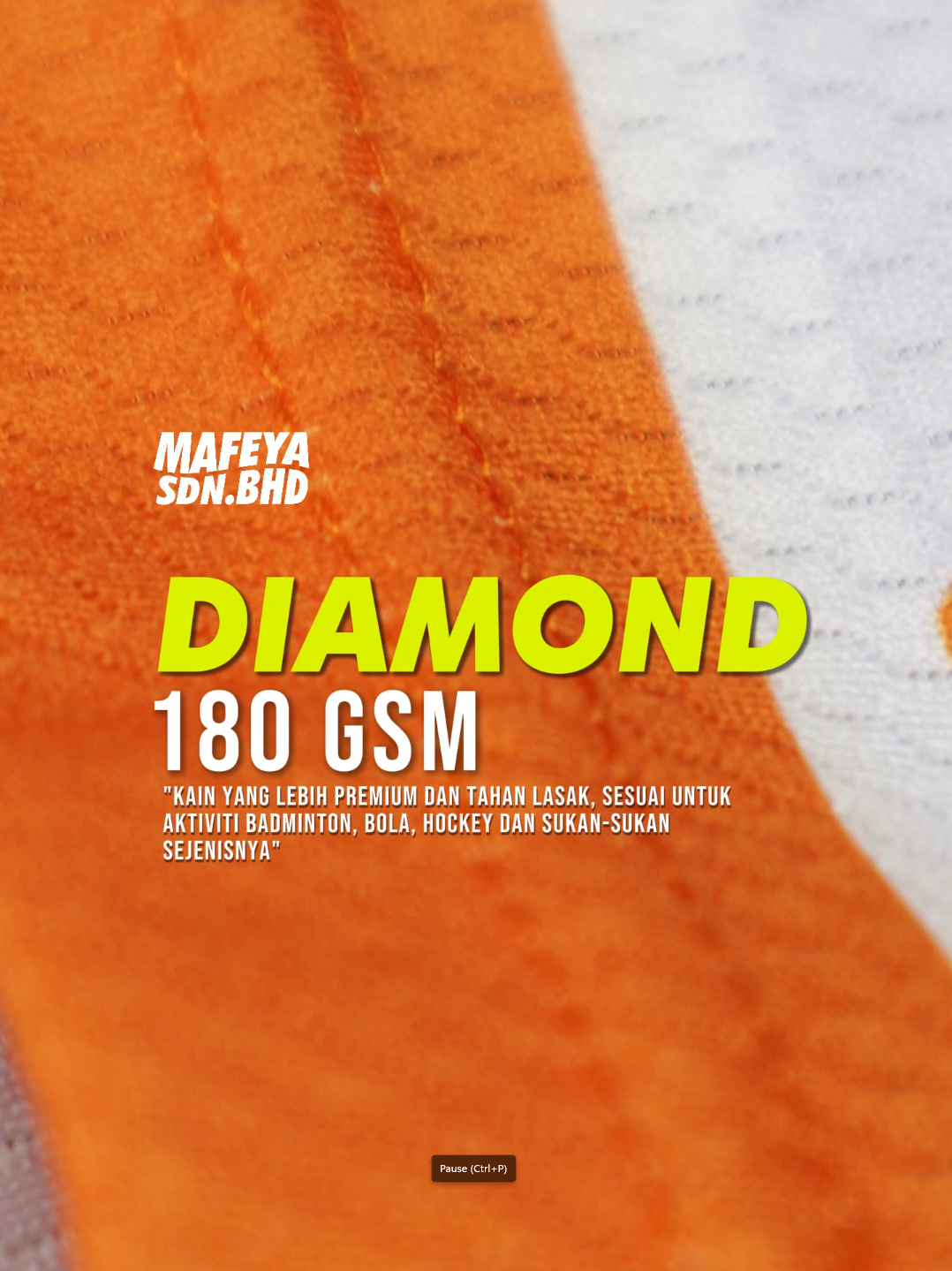 Microfiber Diamond ialah kain ringan dengan corak tenunan berbentuk berlian yang membantu pengudaraan, selesa dipakai dan sesuai untuk pakaian sukan.