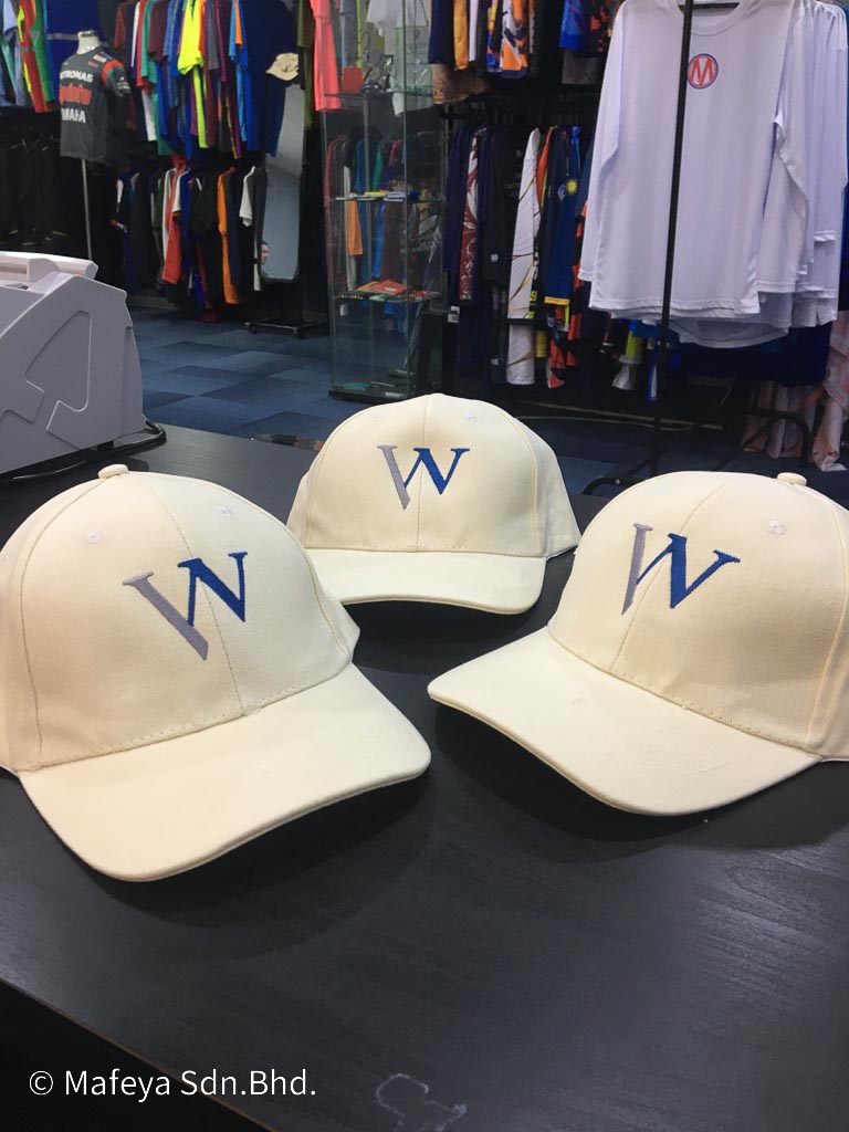 Kami sediakan perkidmatan tempahan topi readymade. Banyak rekaan topi yang menarik dari Mafeya Apparel.