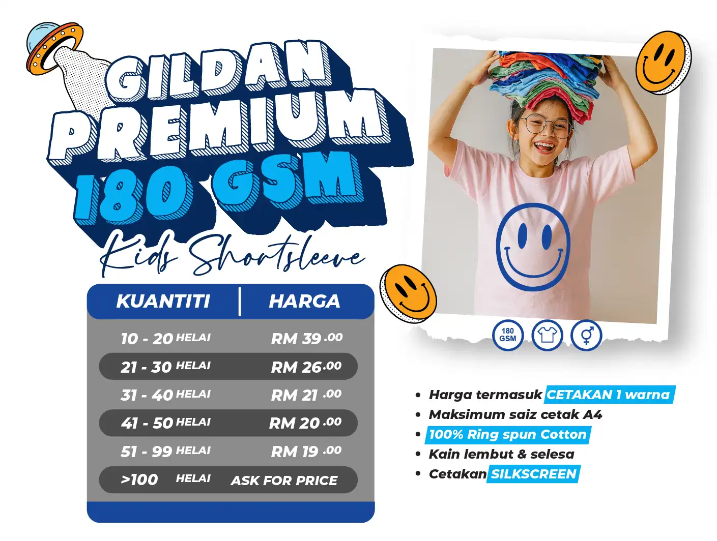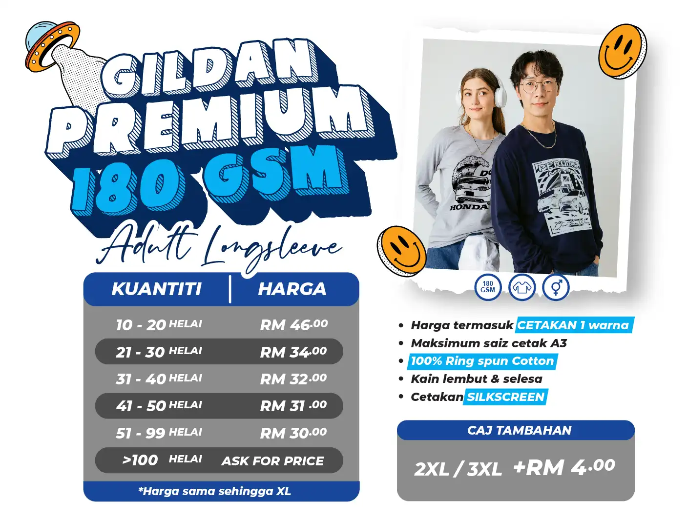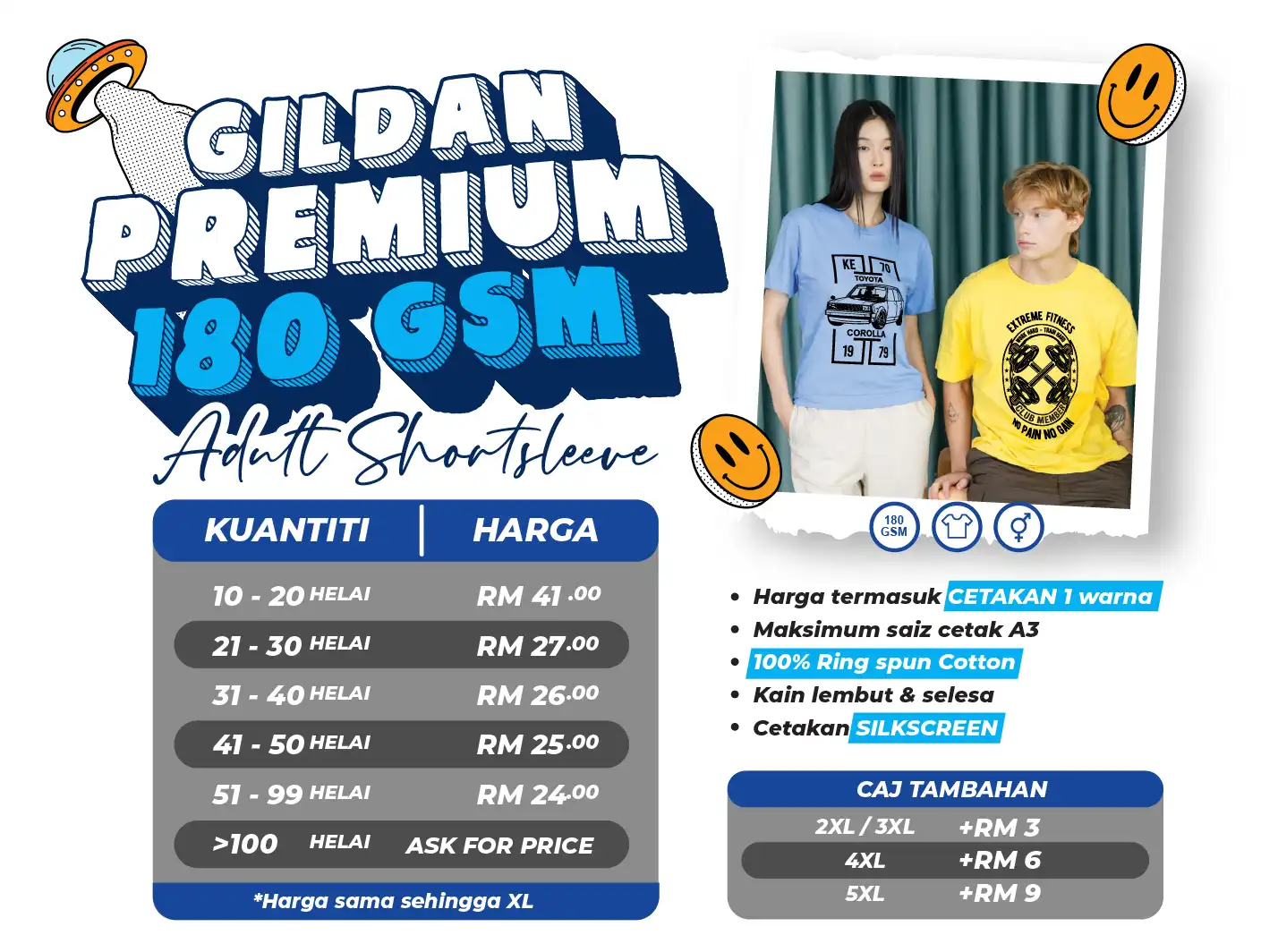 Team Cetak, merupakan pengedar rasmi Gildan & Arrive Guide di Shah Alam. Kami menawarkan pelbagai produk Gildan & Arrive Guide termasuk: