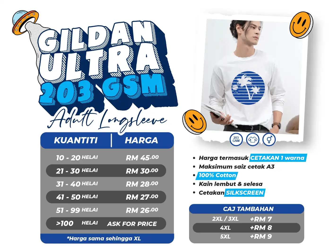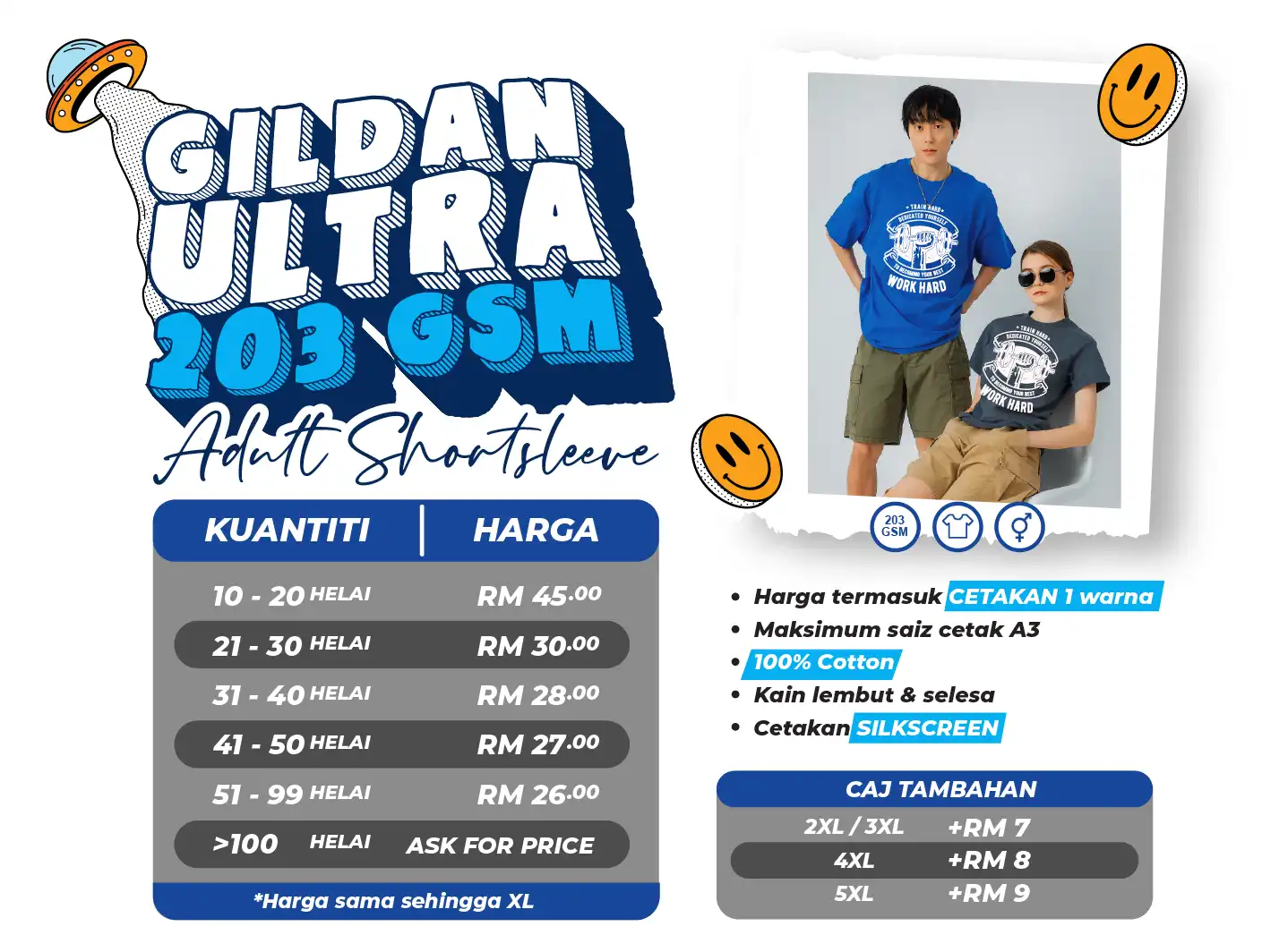 Team Cetak, merupakan pengedar rasmi Gildan & Arrive Guide di Shah Alam. Kami menawarkan pelbagai produk Gildan & Arrive Guide termasuk: